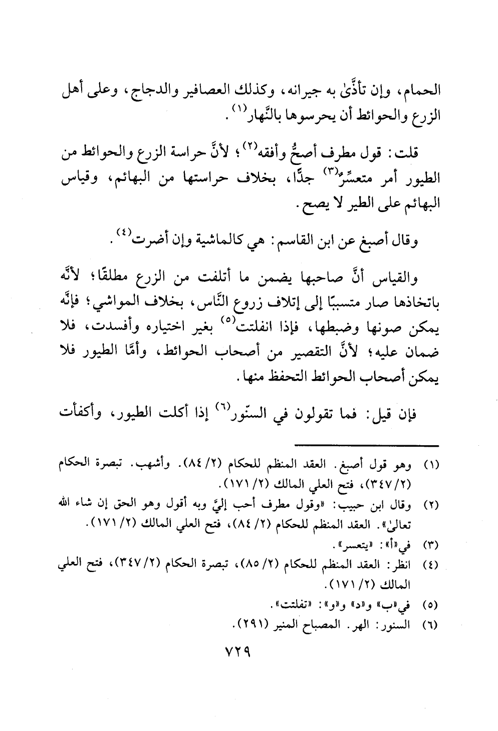 قلت: قول مطرف أصحُّ وأفقه (¬2)؛ لأنَّ حراسة الزرع والحوائط من الطيور أمر متعسِّرٌ (¬3) جدًّا، بخلاف حراستها من البهائم، وقياس البهائم على الطير لا يصح.