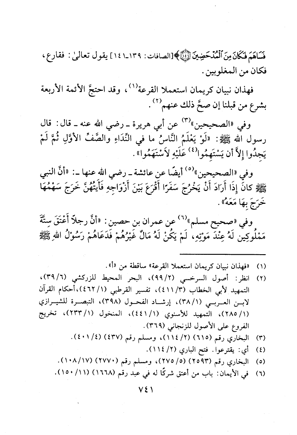 (¬1) "فهذان نبيان كريمان استعملا القرعة" ساقطة من "أ".
