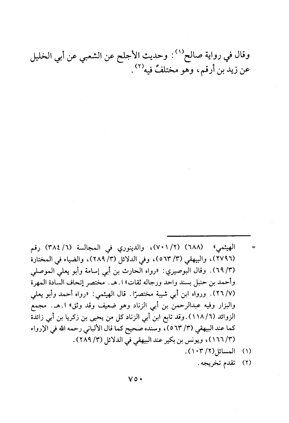 وقال في رواية صالح (¬1): وحديث الأجلح عن الشعبي عن أبي الخليل عن زيد بن أرقم، وهو مختلفٌ فيه (¬2).