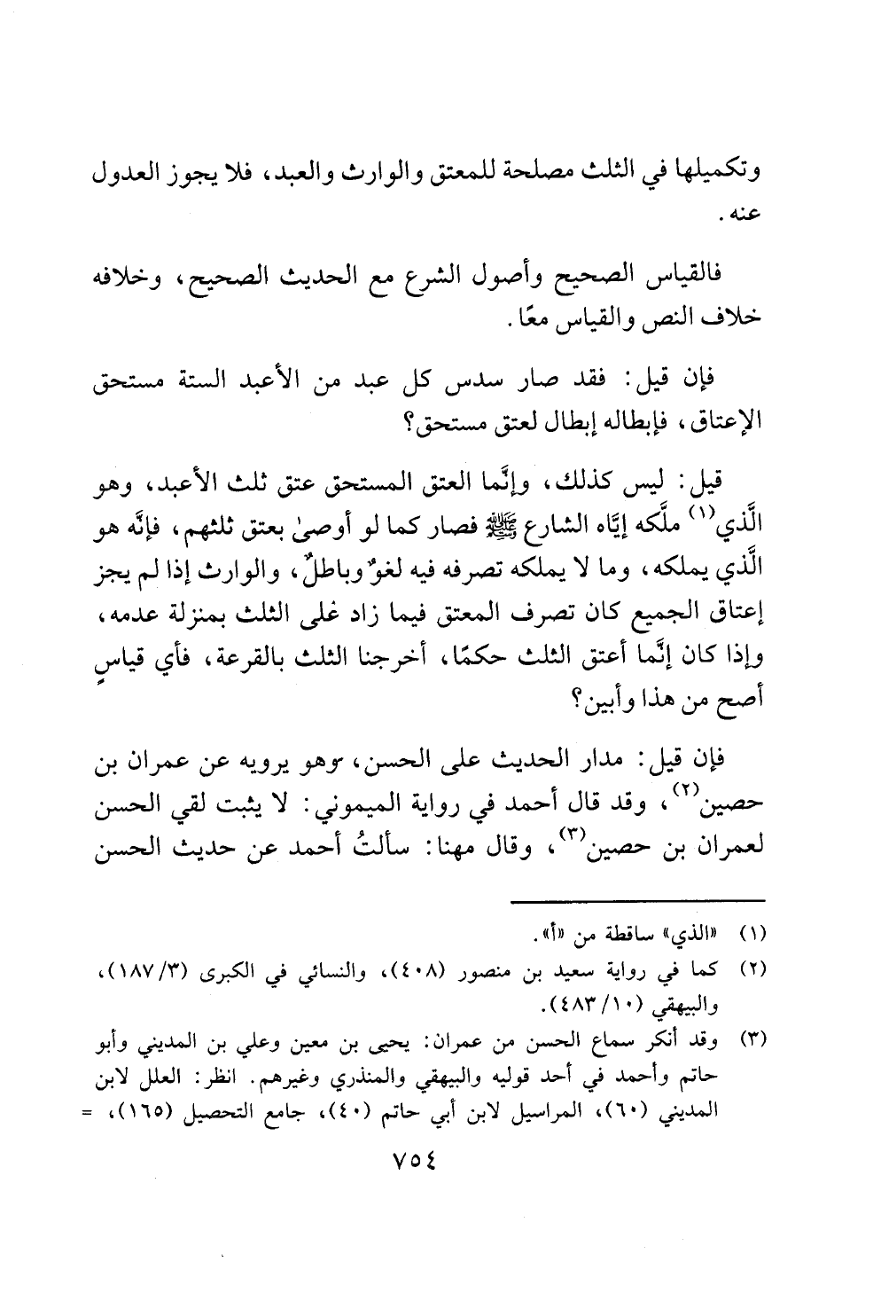 (¬3) وقد أنكر سماع الحسن من عمران: يحيى بن معين وعلي بن المديني وأبو حاتم وأحمد في أحد قوليه والبيهقي والمنذري وغيرهم. انظر: العلل لابن المديني (60)، المراسيل لابن أبي حاتم (40)، جامع التحصيل (165)، =