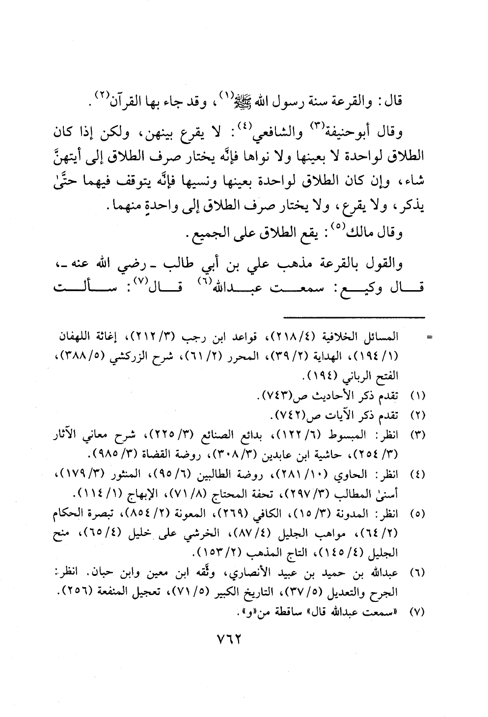 قال: والقرعة سنة رسول الله - صلى الله عليه وسلم - (¬1)، وقد جاء بها القرآن (¬2).