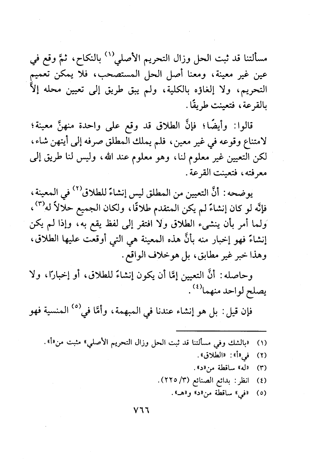 قالوا: وأيضًا؛ فإنَّ الطلاق قد وقع على واحدة منهنَّ معينة؛ لامتناع وقوعه في غير معين، فلم يملك المطلق صرفه إلى أيتهن شاء، لكن التعيين غير معلوم لنا، وهو معلوم عند الله، وليس لنا طريق إلى معرفته، فتعينت القرعة.