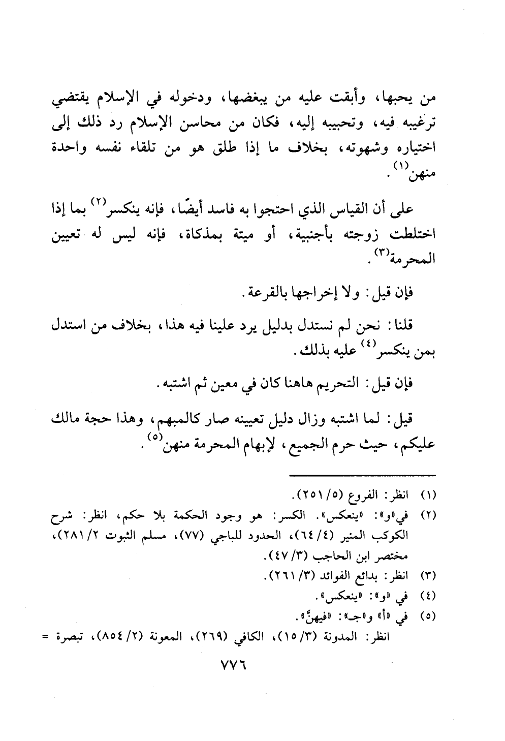 قيل: لما اشتبه وزال دليل تعيينه صار كالمبهم، وهذا حجة مالك عليكم، حيث حرم الجميع، لإبهام المحرمة منهن (¬5).