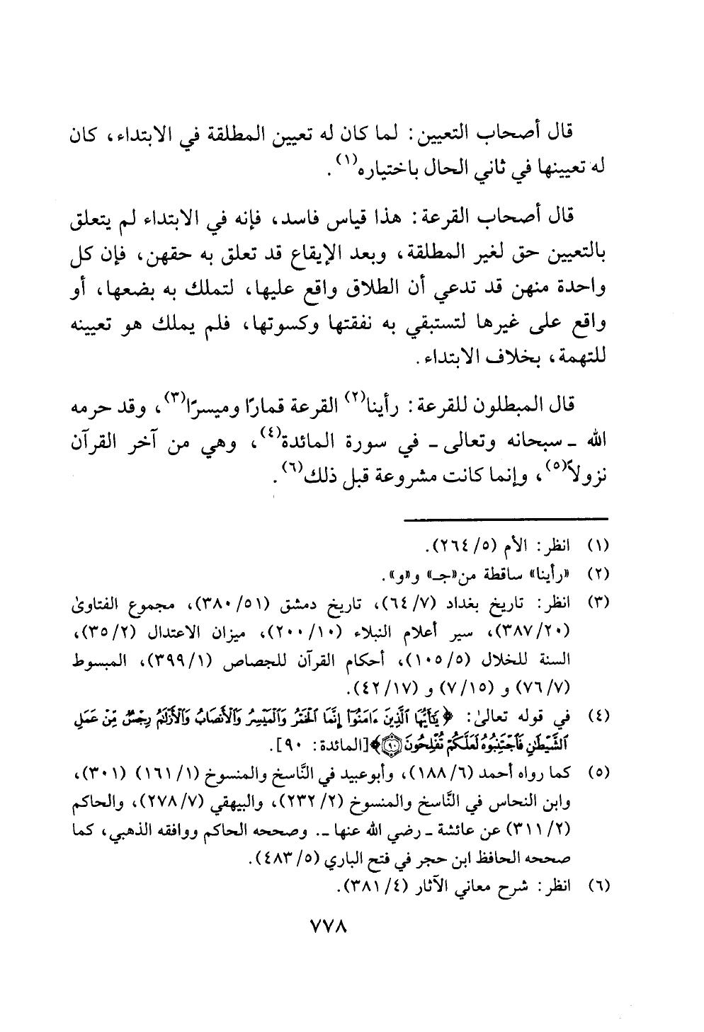 قال المبطلون للقرعة: رأينا (¬2) القرعة قمارًا وميسرًا (¬3)، وقد حرمه الله - سبحانه وتعالى - في سورة المائدة (¬4)، وهي من آخر القرآن نزولًا (¬5)، وإنما كانت مشروعة قبل ذلك (¬6).