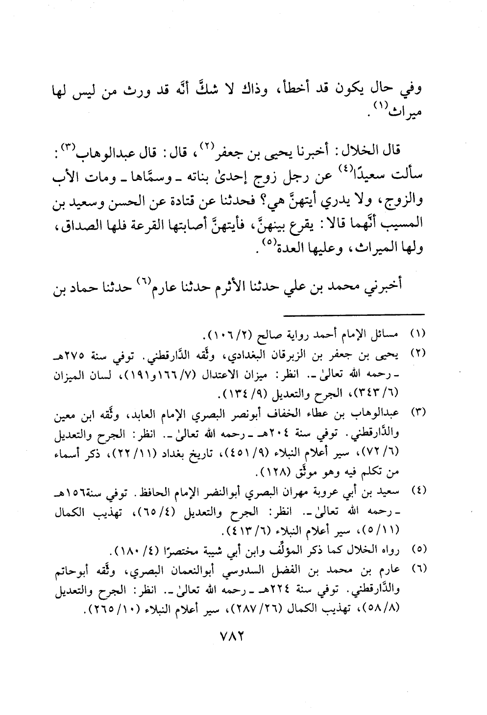 قال الخلال: أخبرنا يحيى بن جعفر (¬2)، قال: قال عبد الوهاب (¬3): سألت سعيدًا (¬4) عن رجل زوج إحدى بناته - وسمَّاها - ومات الأب والزوج، ولا يدري أيتهنَّ هي؟ فحدثنا عن قتادة عن الحسن وسعيد بن المسيب أنَّهما قالا: يقرع بينهنَّ، فأيتهنَّ أصابتها القرعة فلها الصداق، ولها الميراث، وعليها العدة (¬5).