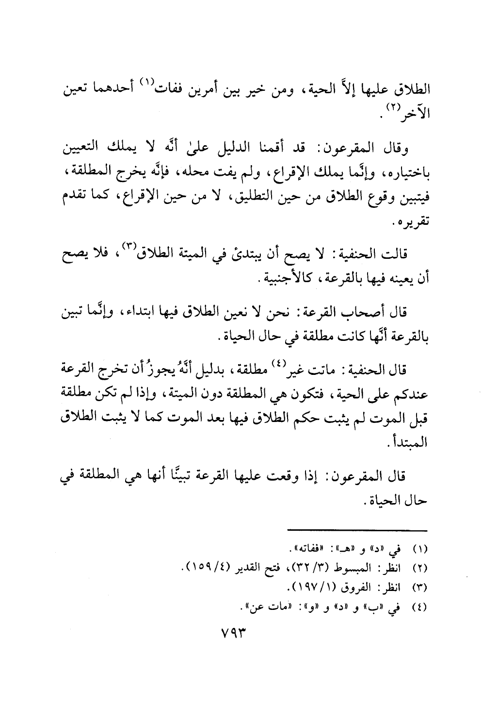 قال الحنفية: ماتت غير (¬4) مطلقة، بدليل أنَّهُ يجوزُ أن تخرج القرعة عندكم على الحية، فتكون هي المطلقة دون الميتة، وإذا لم تكن مطلقة قبل الموت لم يثبت حكم الطلاق فيها بعد الموت كما لا يثبت الطلاق المبتدأ.