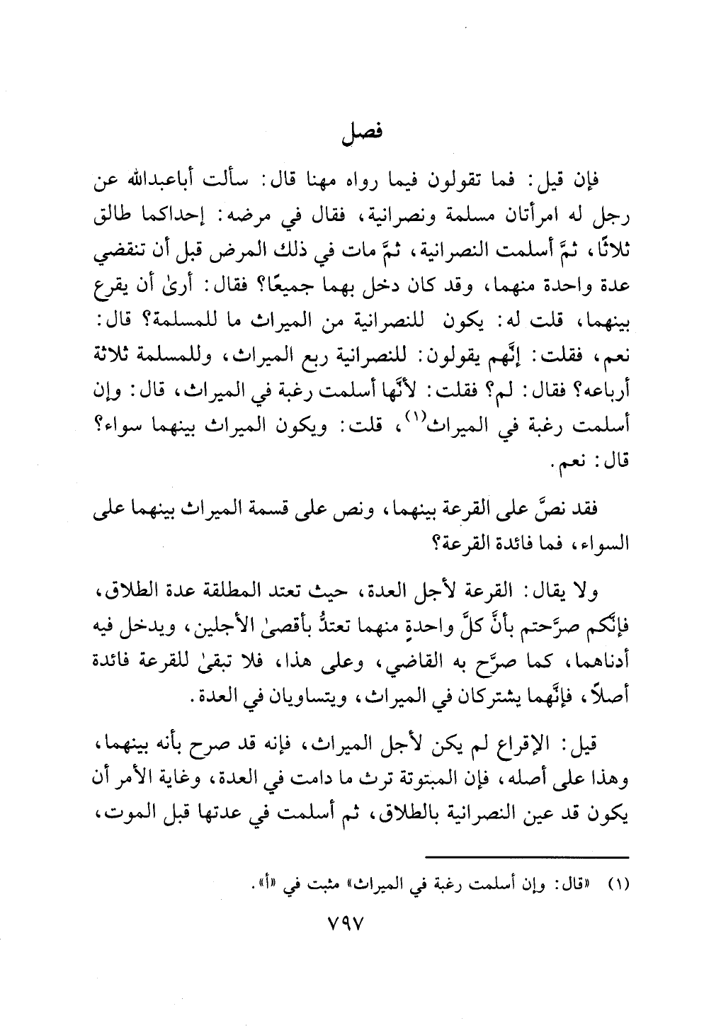 قيل: الإقراع لم يكن لأجل الميراث، فإنه قد صرح بأنه بينهما، وهذا على أصله، فإن المبتوتة ترث ما دامت في العدة، وغاية الأمر أن يكون قد عين النصرانية بالطلاق، ثم أسلمت في عدتها قبل الموت،