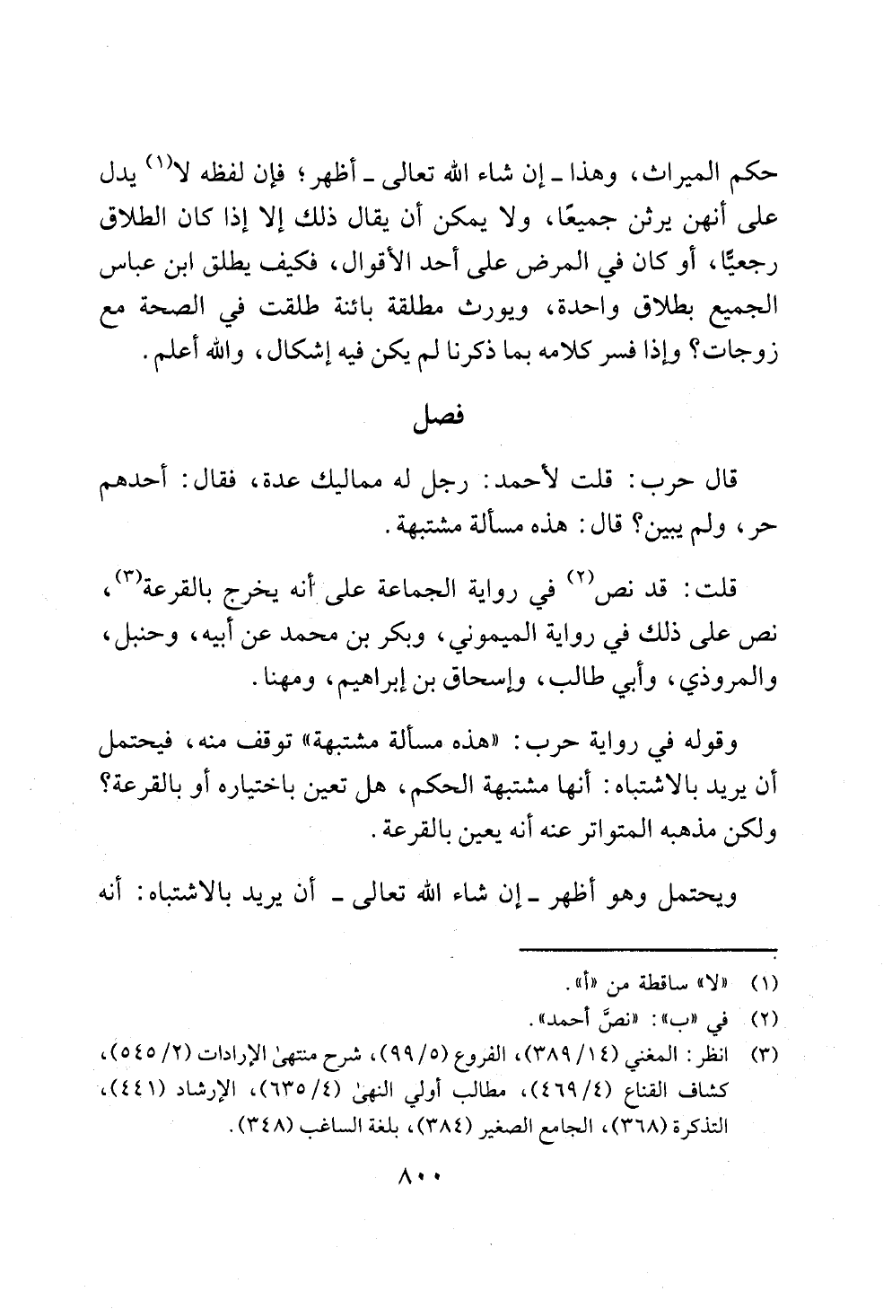 (¬3) انظر: المغني (14/ 389)، الفروع (5/ 99)، شرح منتهى الإرادات (2/ 545)، كشاف القناع (4/ 469)، مطالب أولي النهى (4/ 635)، الإرشاد (441)، التذكرة (368)، الجامع الصغير (384)، بلغة الساغب (348).