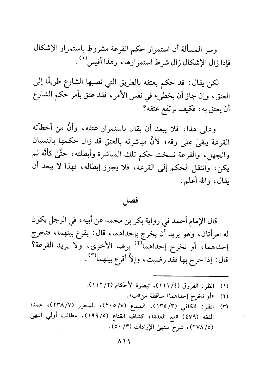 (¬3) انظر: الكافي (3/ 135)، المبدع (7/ 205)، المحرر (7/ 238)، عمدة الفقه (479) "مع العدة"، كشاف القناع (5/ 199)، مطالب أولي النهى (5/ 278)، شرح منتهى الإرادات (3/ 50).