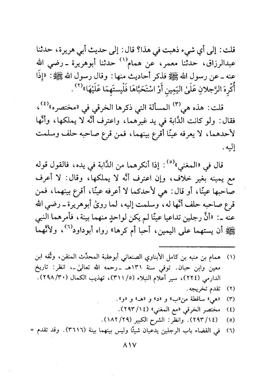 (¬1) همام بن منبه بن كامل الأبناوي الصنعاني أبو عقبة المحدِّث المتقن، وثَّقه ابن معين وابن حبان. توفي سنة 131 هـ - رحمه الله تعالى -، انظر: تاريخ الدارمي (224)، سير أعلام النبلاء (5/ 311)، تهذيب الكمال (30/ 298).