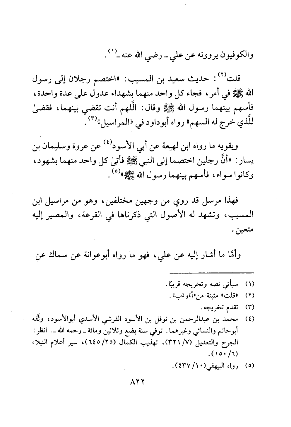 قلت (¬2): حديث سعيد بن المسيب: "اختصم رجلان إلى رسول الله - صلى الله عليه وسلم - في أمر، فجاء كل واحد منهما بشهداء عدول على عدة واحدة، فأسهم بينهما رسول الله - صلى الله عليه وسلم - وقال: الَّلهم أنت تقضي بينهما، فقضى للَّذي خرج له السهم" رواه أبو داود في "المراسيل" (¬3).