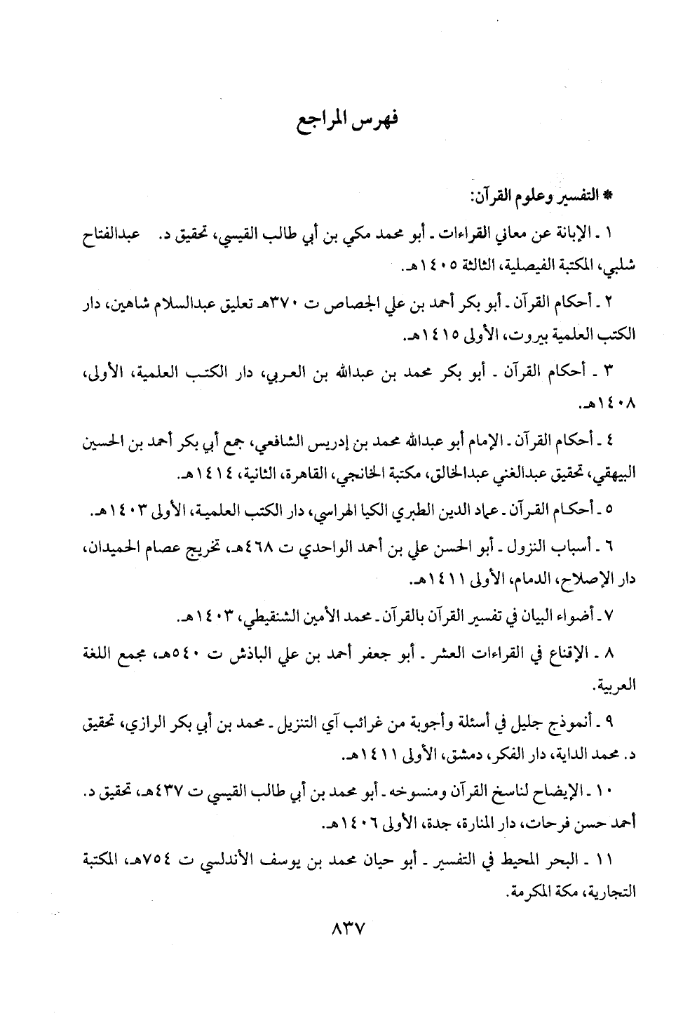 1 - الإبانة عن معاني القراءات - أبو محمد مكي بن أبي طالب القيسي، تحقيق د. عبد الفتاح شلبي، المكتبة الفيصلية، الثالثة 1405 هـ.