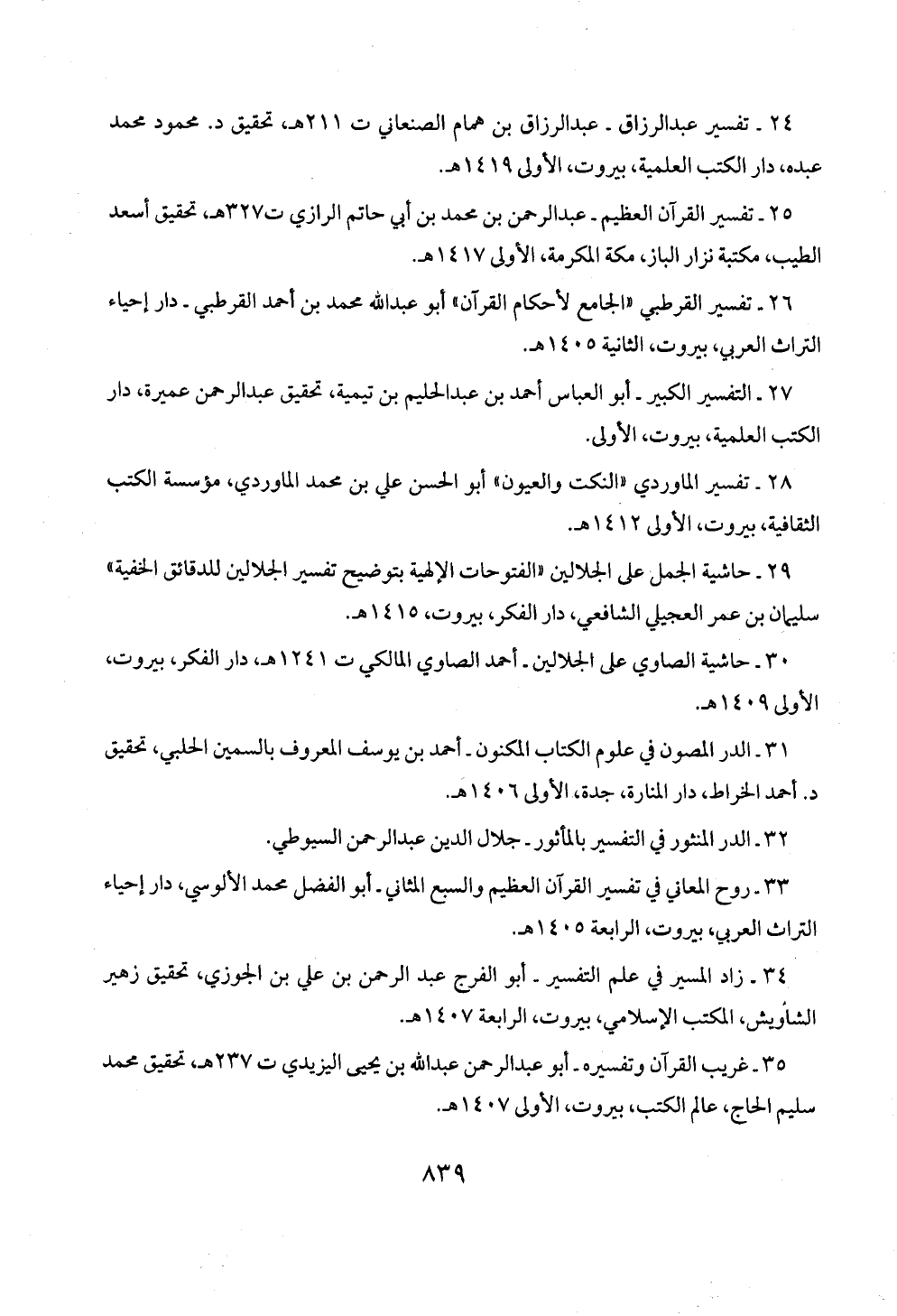 34 - زاد المسير في علم التفسير - أبو الفرج عبد الرحمن بن علي بن الجوزي، تحقيق زهير الشاويش، المكتب الإسلامي، بيروت، الرابعة 1407 هـ.