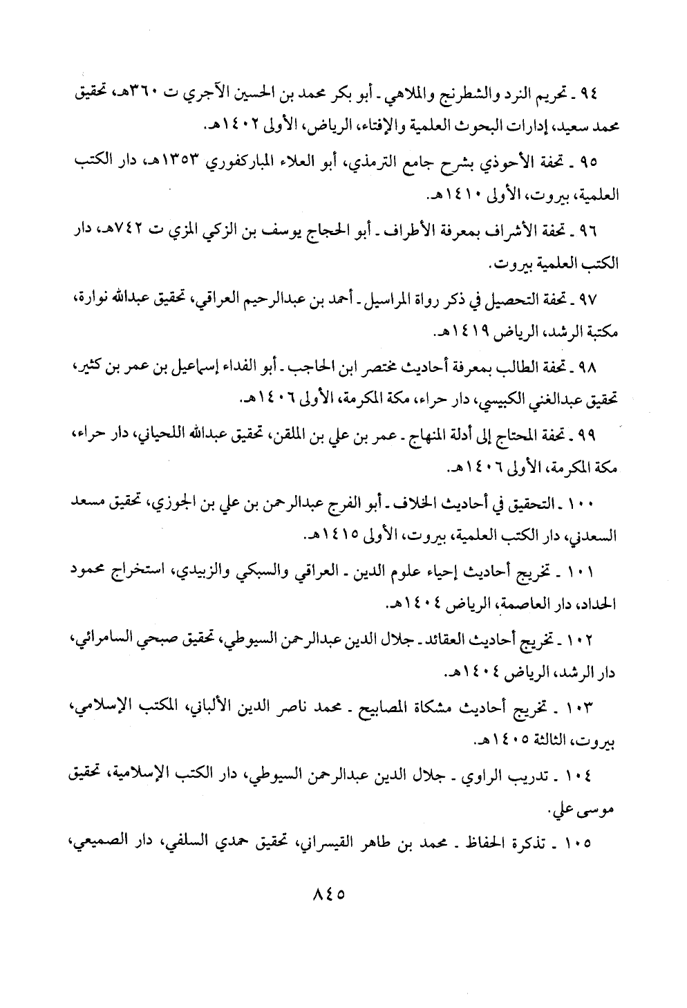 97 - تحفة التحصيل في ذكر رواة المراسيل - أحمد بن عبد الرحيم العراقي، تحقيق عبد الله نوارة، مكتبة الرشد، الرياض 1419 هـ.