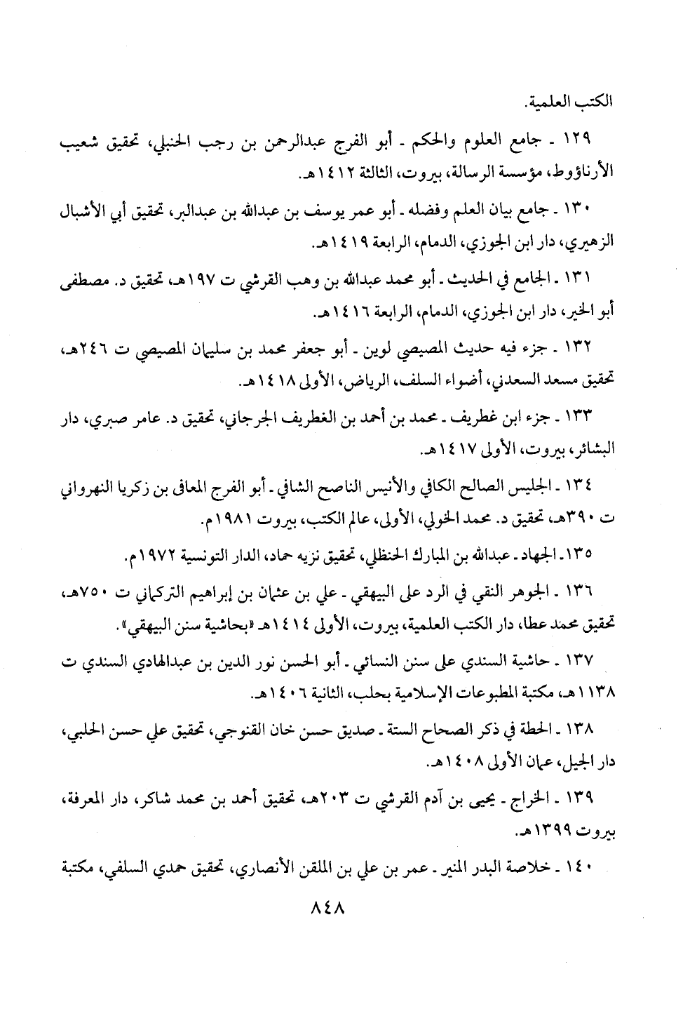 138 - الحطة في ذكر الصحاح الستة - صديق حسن خان القنوجي، تحقيق علي حسن الحلبي، دار الجيل، عمان الأولى 1408 هـ.