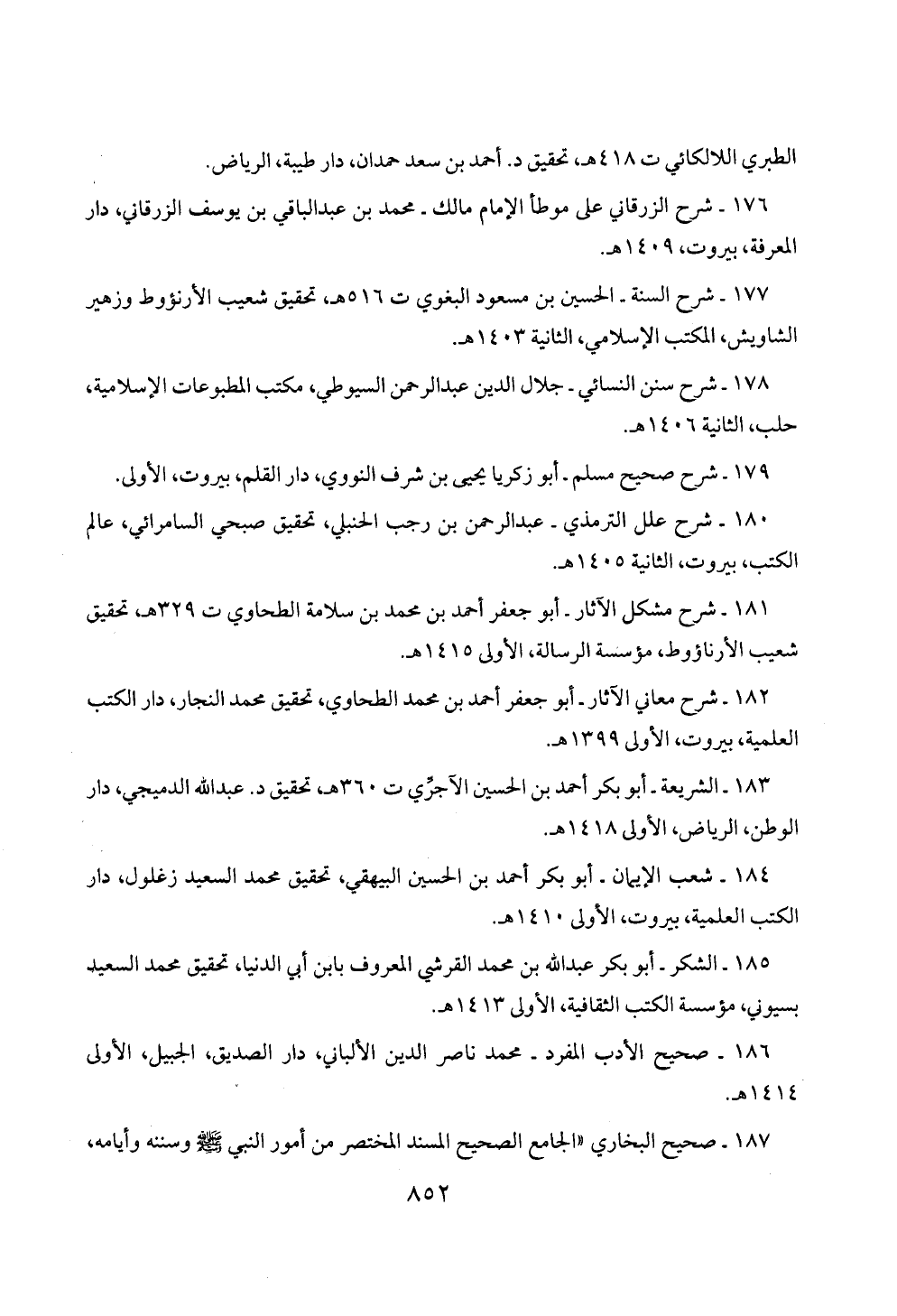 177 - شرح السنة - الحسين بن مسعود البغوي ت 516 هـ، تحقيق شعيب الأرنؤوط وزهير الشاويش، المكتب الإسلامي، الثانية 1403 هـ.
