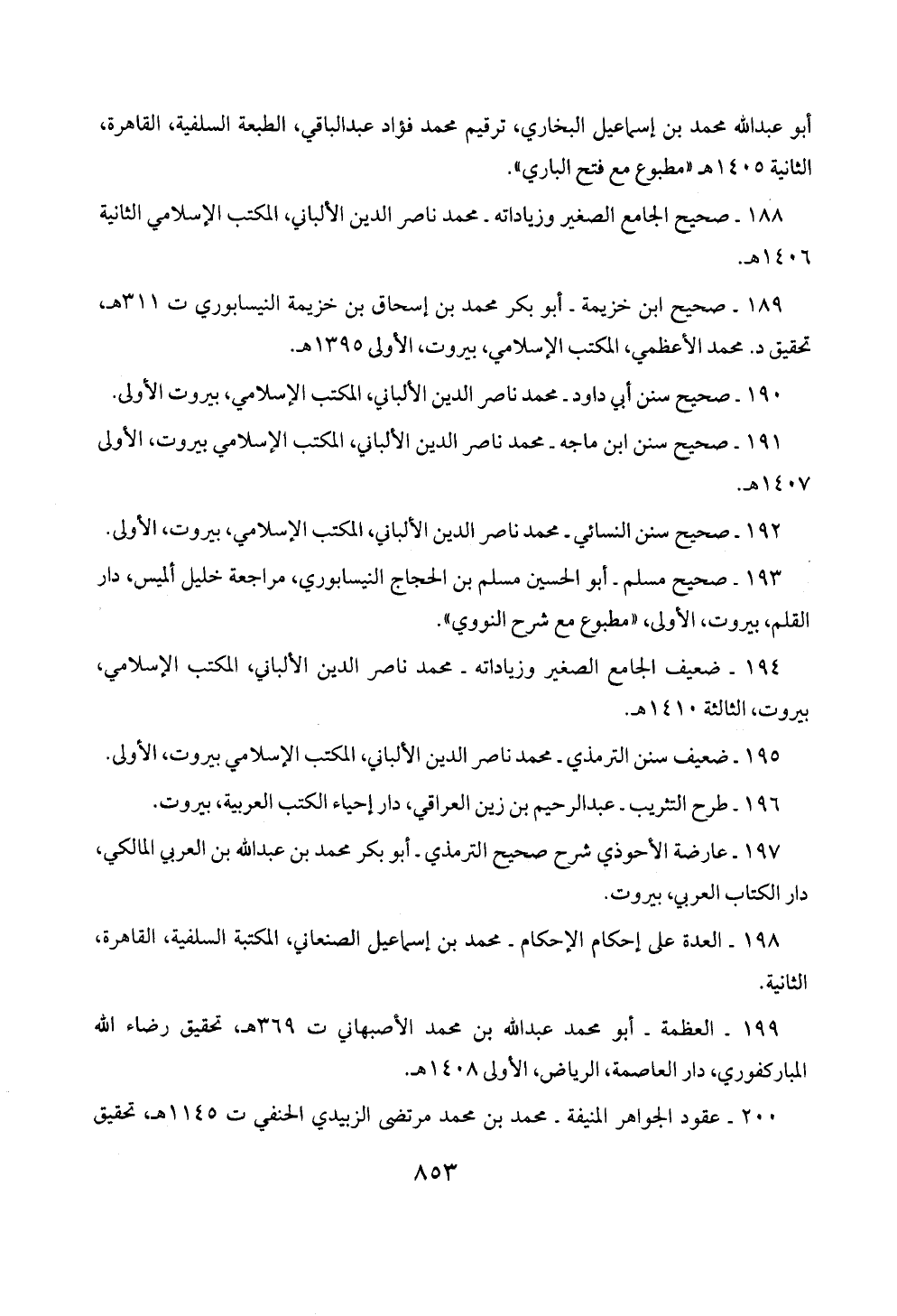 189 - صحيح ابن خزيمة - أبو بكر محمد بن إسحاق بن خزيمة النيسابوري ت 311 هـ، تحقيق د. محمد الأعظمي، المكتب الإسلامي، بيروت، الأولى 1395 هـ.