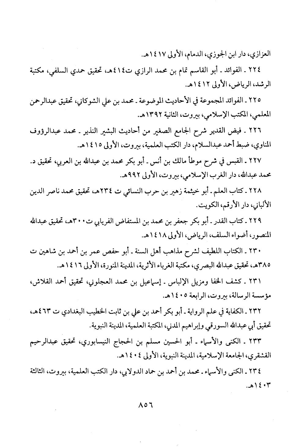230 - الكتاب اللطيف لشرح مذاهب أهل السنة - أبو حفص عمر بن أحمد بن شاهين ت 385 هـ، تحقيق عبد الله البصري، مكتبة الغرباء الأثرية، المدينة المنورة، الأولى 1416 هـ.