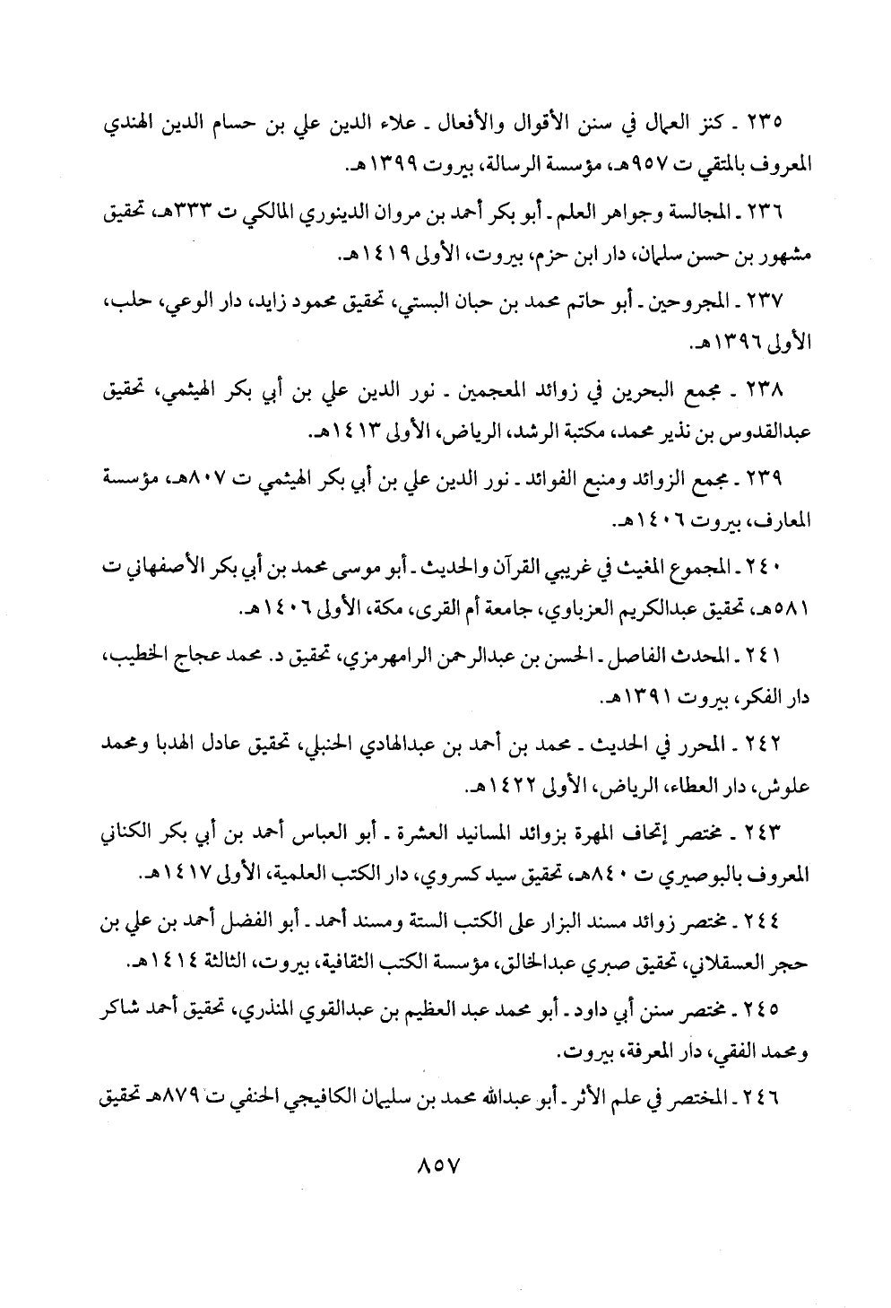 238 - مجمع البحرين في زوائد المعجمين - نور الدين علي بن أبي بكر الهيثمي، تحقيق عبد القدوس بن نذير محمد، مكتبة الرشد، الرياض، الأولى 1413 هـ.