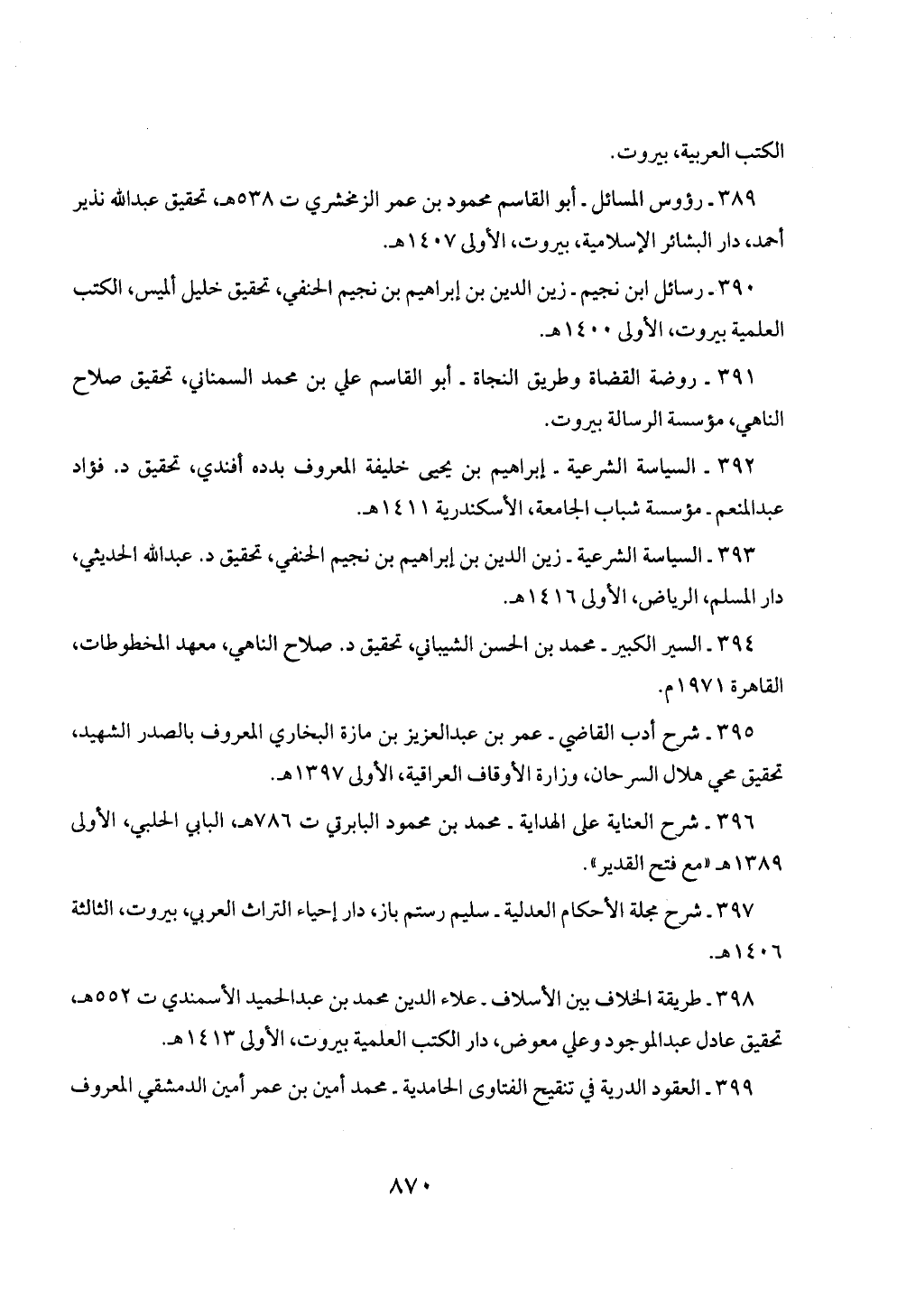 393 - السياسة الشرعية - زين الدين بن إبراهيم بن نجيم الحنفي، تحقيق د. عبد الله الحديثي، دار المسلم، الرياض، الأولى 1416 هـ.