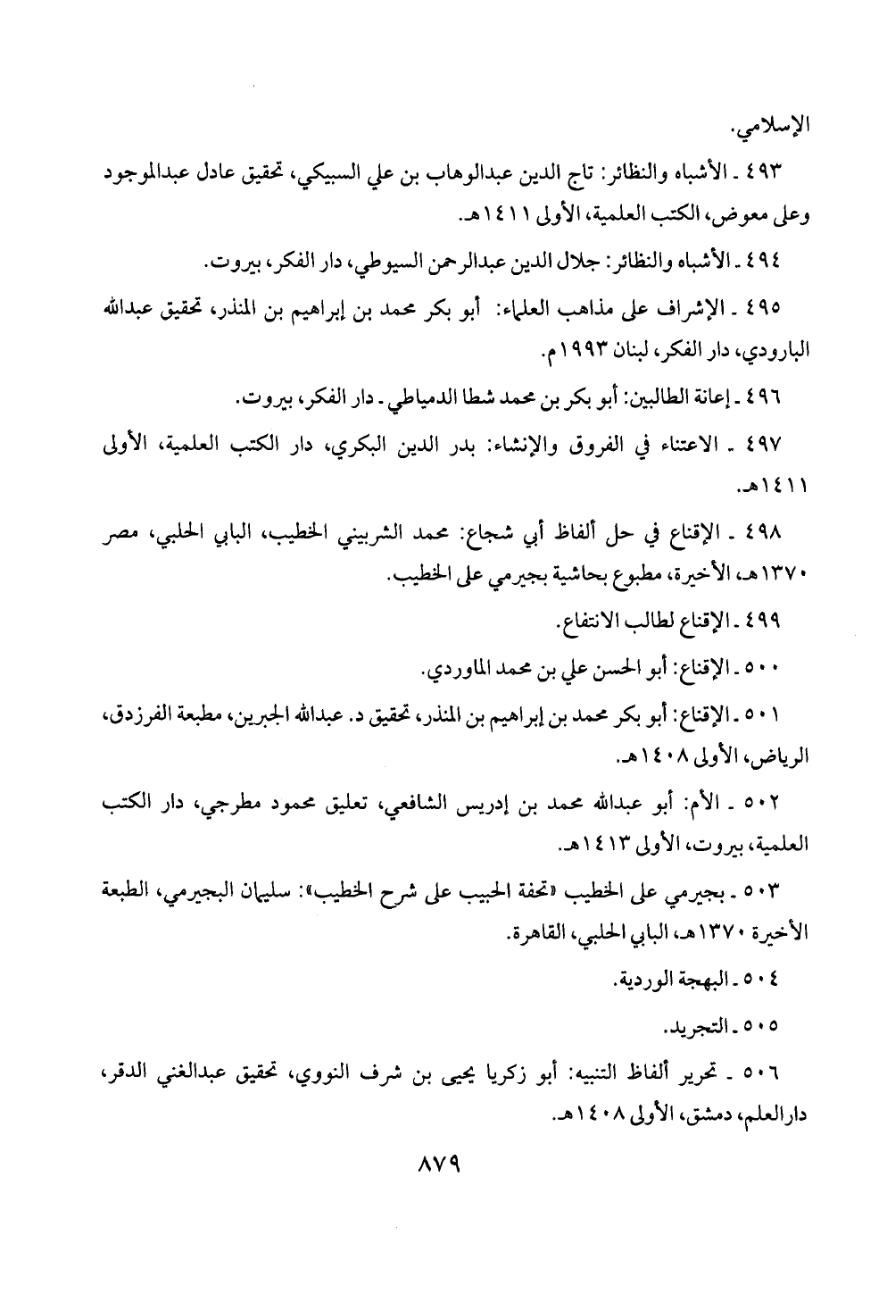 501 - الإقناع: أبو بكر محمد بن إبراهيم بن المنذر، تحقيق د. عبد الله الجبرين، مطبعة الفرزدق، الرياض، الأولى 1408 هـ.