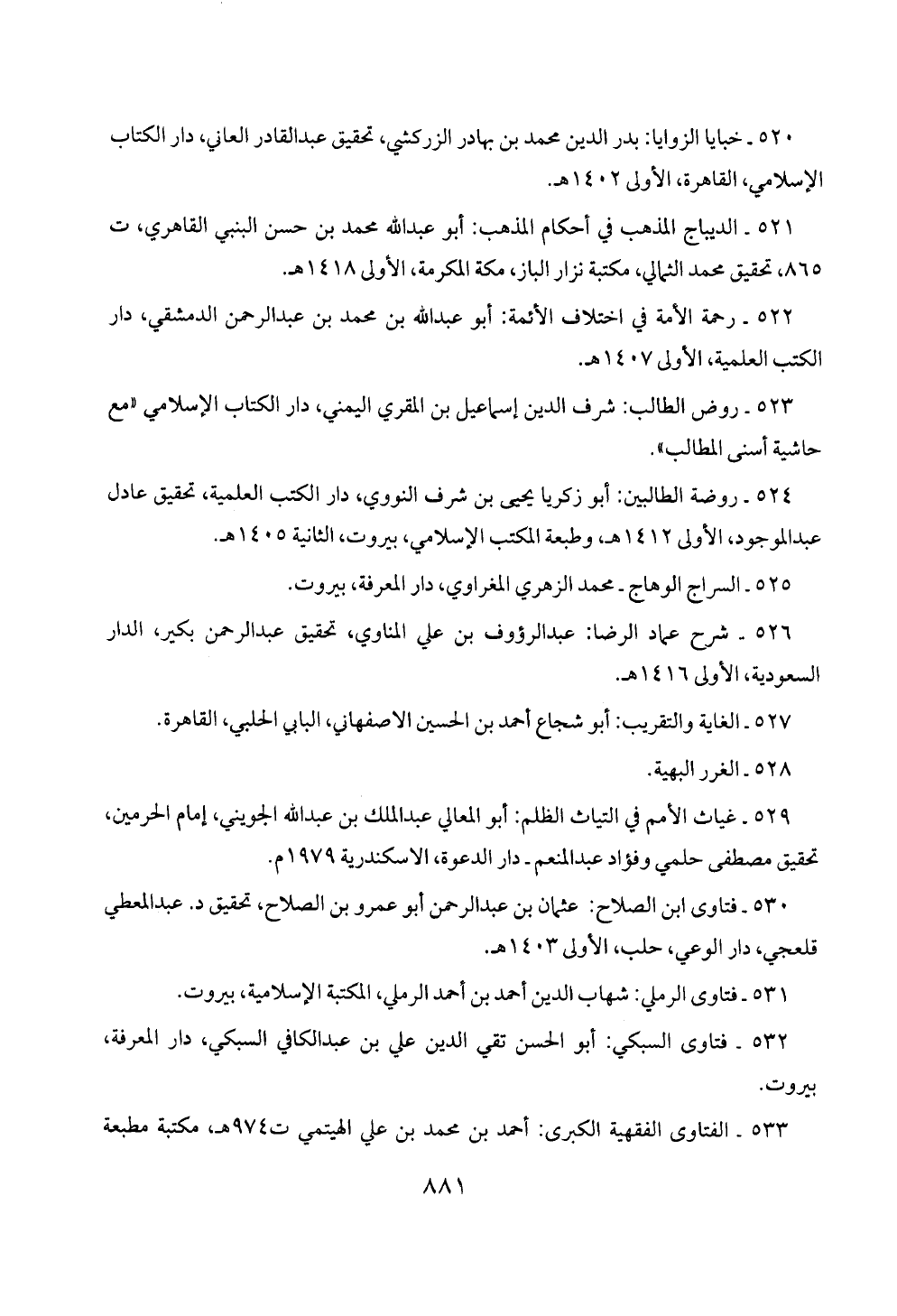 531 - فتاوى الرملي: شهاب الدين أحمد بن أحمد الرملي، المكتبة الإسلامية، بيروت.
