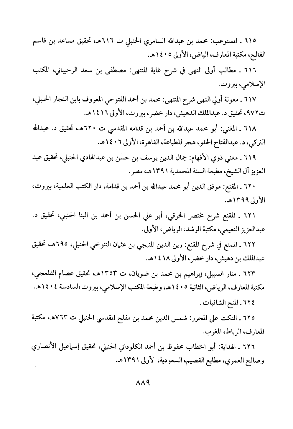 615 - المستوعب: محمد بن عبد الله السامري الحنبلي ت 616 هـ، تحقيق مساعد بن قاسم الفالح، مكتبة المعارف، الياض، الأولى 1405 هـ.