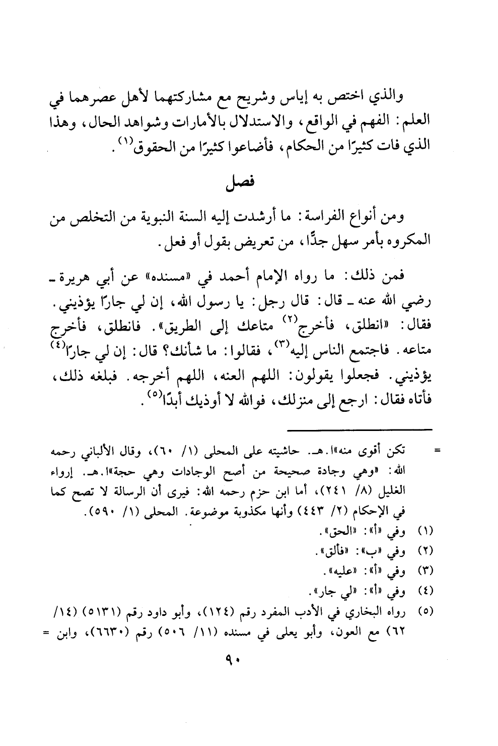 ومن أنواع الفراسة: ما أرشدت إليه السنة النبوية من التخلص من المكروه بأمر سهل جدًّا، من تعريض بقول أو فعل.