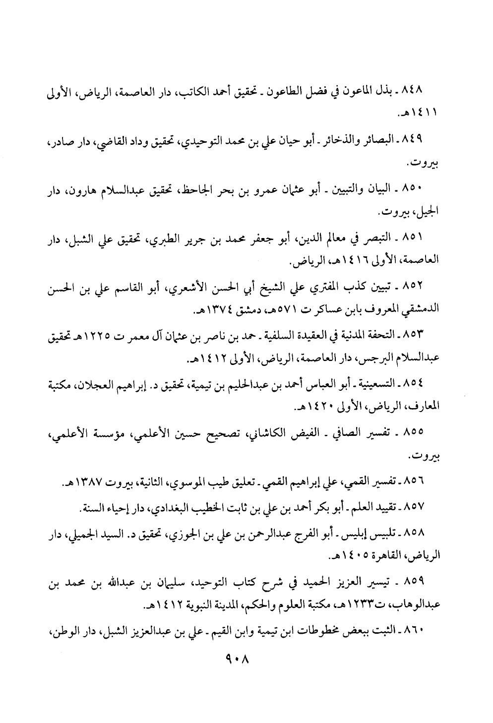 859 - تيسير العزيز الحميد في شرح كتاب التوحيد، سليمان بن عبد الله بن محمَّد بن عبد الوهاب، ت 1233 هـ، مكتبة العلوم والحكم، المدينة النبوية 1412 هـ.