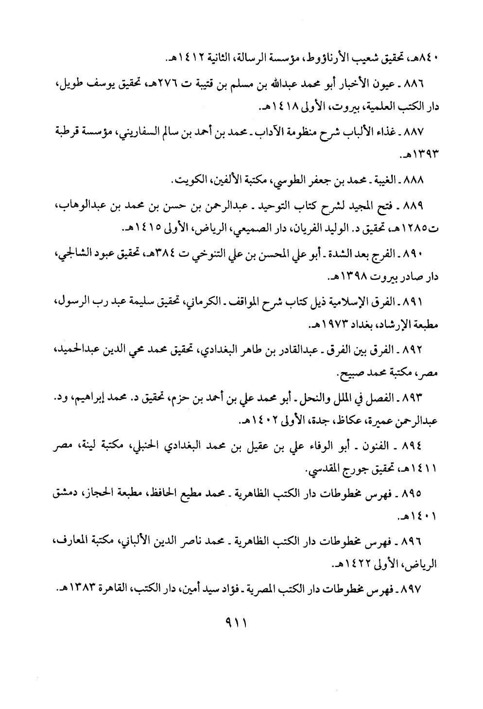 892 - الفرق بين الفرق - عبد القادر بن طاهر البغدادي، تحقيق محمَّد محي الدين عبد الحميد، مصر، مكتبة محمد صبيح.