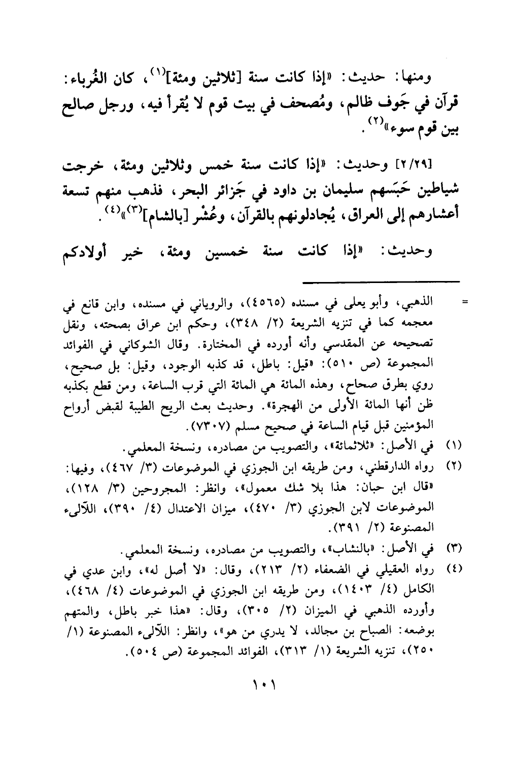 ظن انها لمائة الأولى من الهجرة ". وحديث بعث الريح الطيبة لقبض أرواح