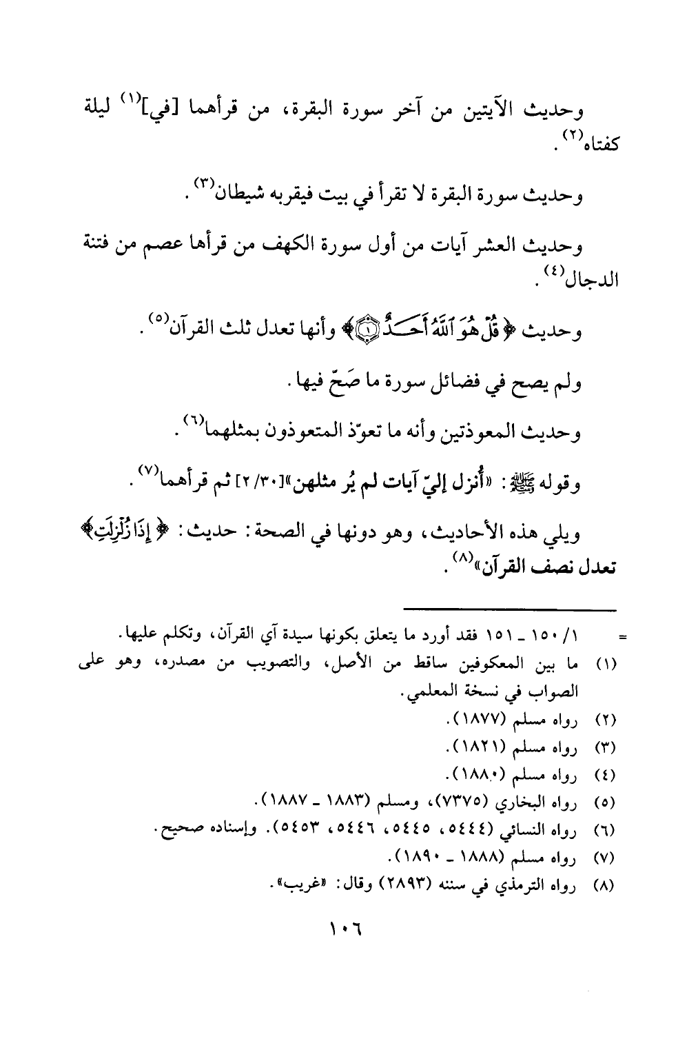 وحديث المعوذتين و نه ما تعوذ المتعوذون بمثلهما (6).