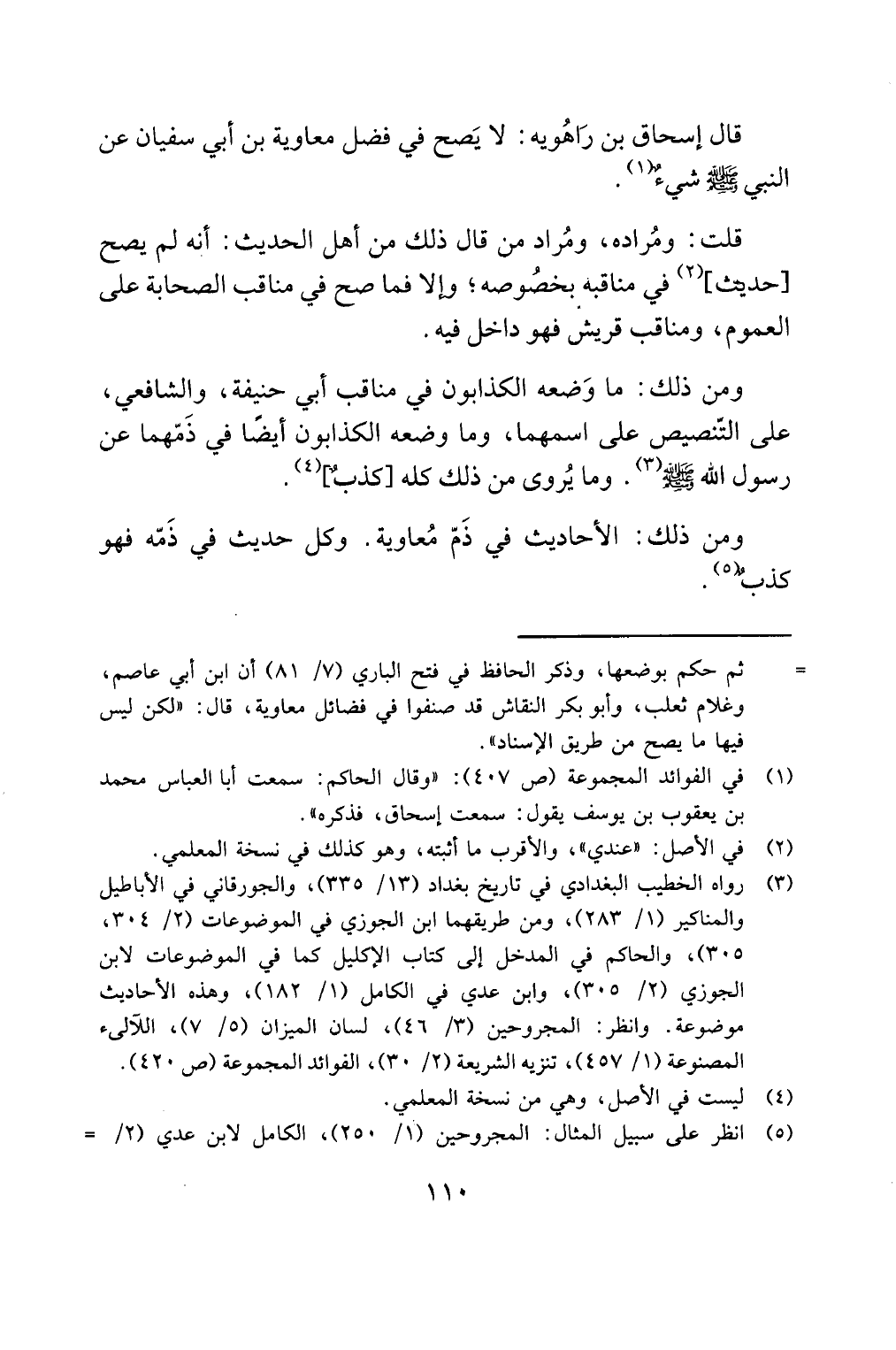 قال إسحاق بن راهويه: لا يصح في فضل معاوية بن ابي سفيان عن