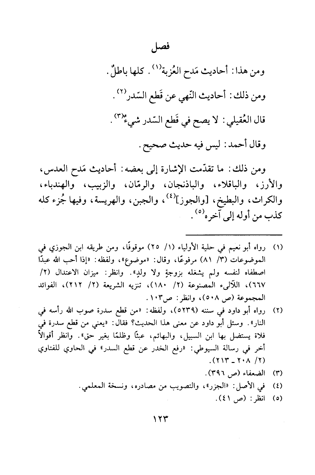قال العقيلي: لا يصح في قطع السدر شي م! 3).
