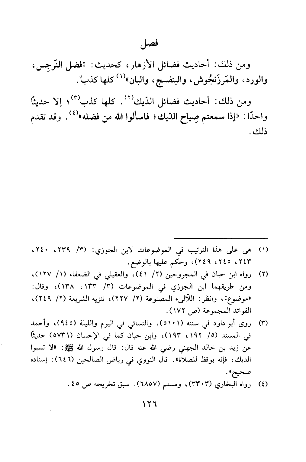 ومن ذلك: احاديث فضائل الازهار، كحديث: "فصل النرجس،