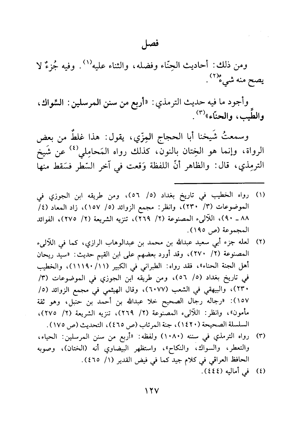 الرو ة، وانما هو الختان بالنون، كذلك رواه المحاملي (4) عن شيخ