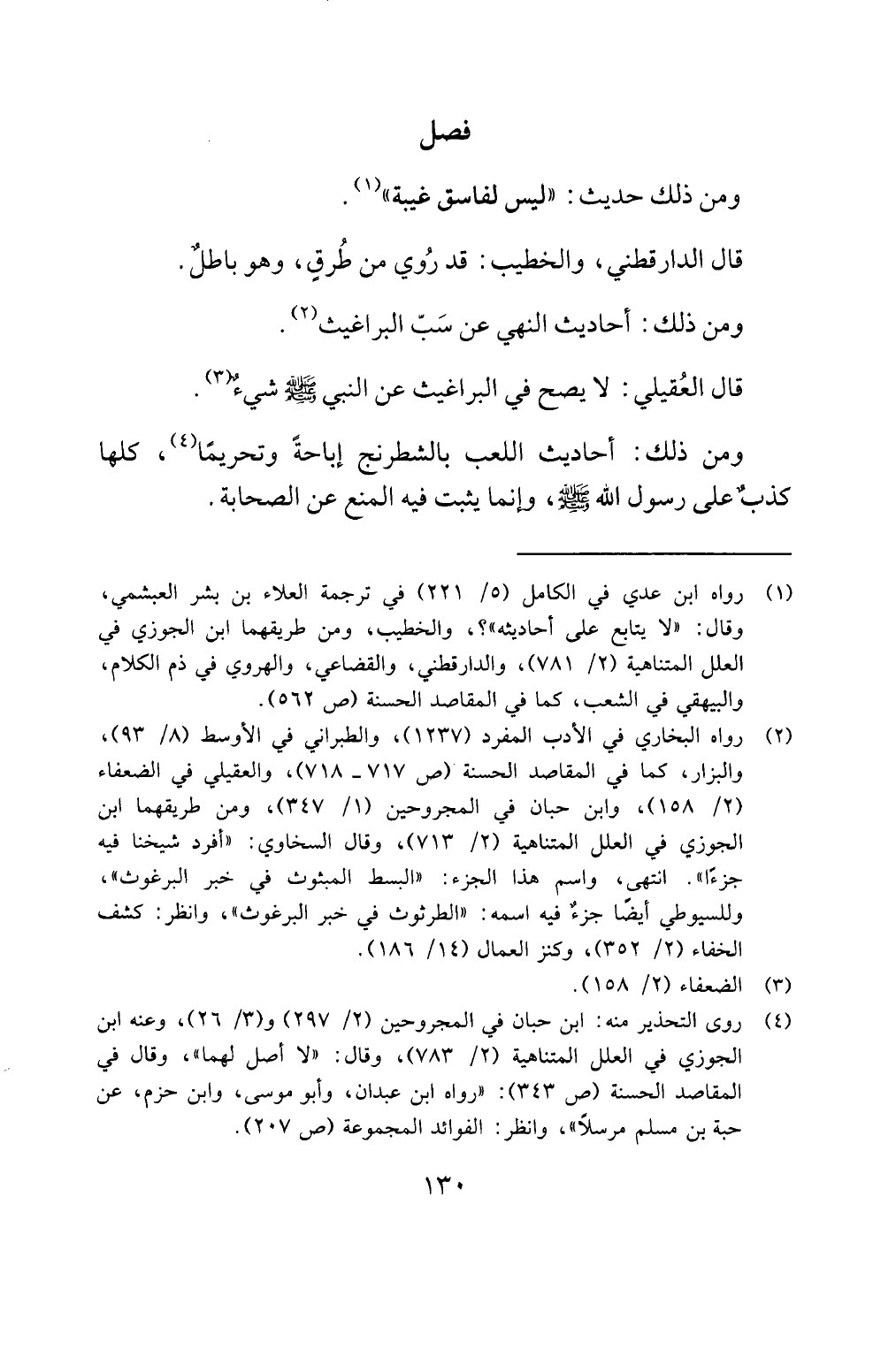 الجوزي في العلل المتناهية (2/ 713)، وقال السخاوي: "أفرد شيخنا فيه