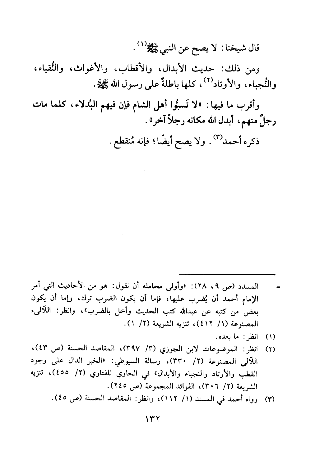ومن ذلك: حديث الأبدال، والاقطاب، والاغواث، والنقباء،