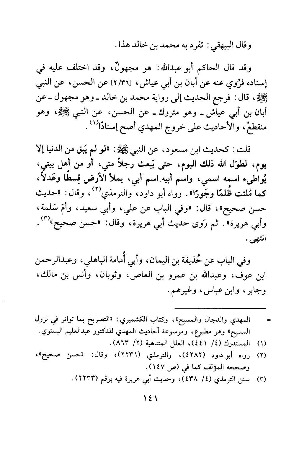 المهدي والدجال والمسيح "، وكتاب الكشميري: "التصريج بما تواتر في نزول