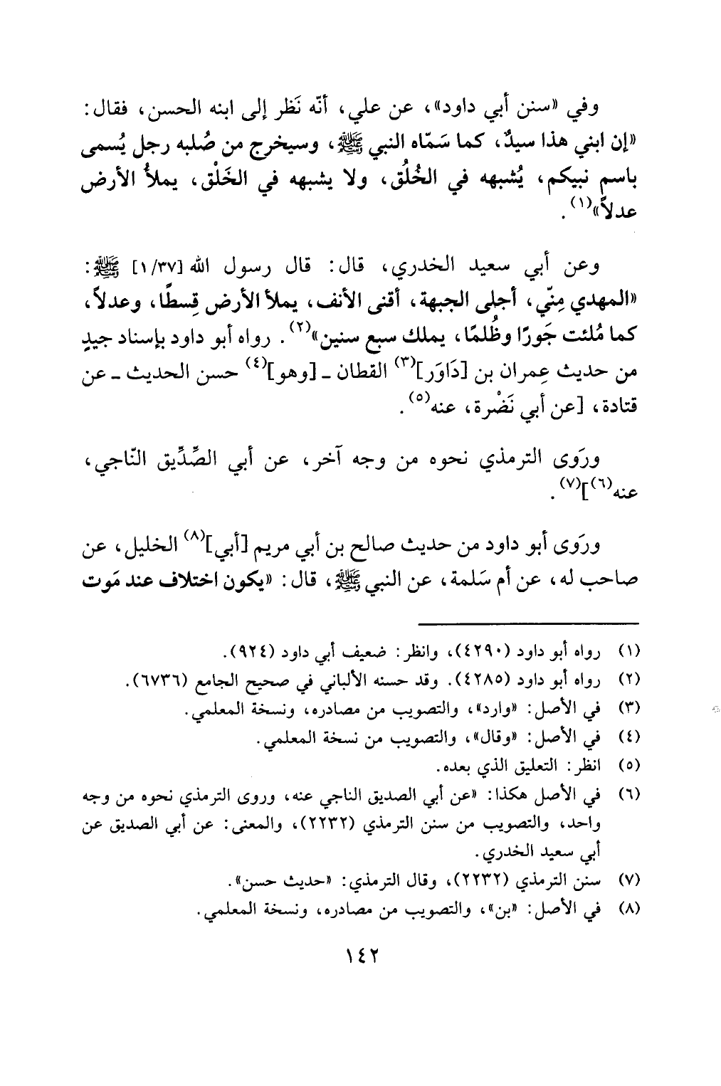 "المهدي مني، أخر الجبهة، أقنى الأنف، يملأ الأرض قسطا، وعدلأ،