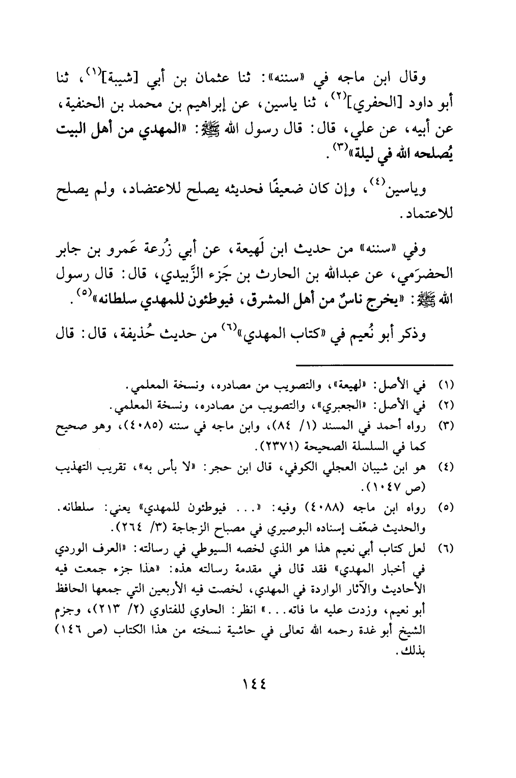 الشيخ أبو غدة رحمه الله تعالى في حاشية نسخته من هذا الكتاب (ص 146)