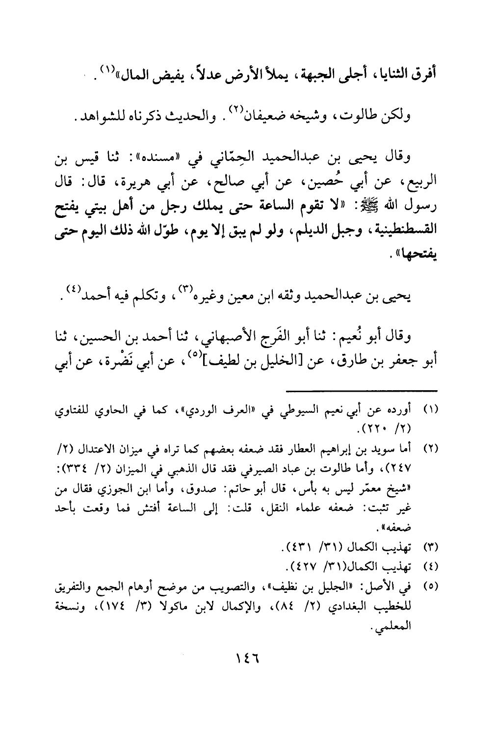 افرق الثنايا، أجلى الجبهة، يملأ الارض عدلأ، يفيض المال " (1) 0 9