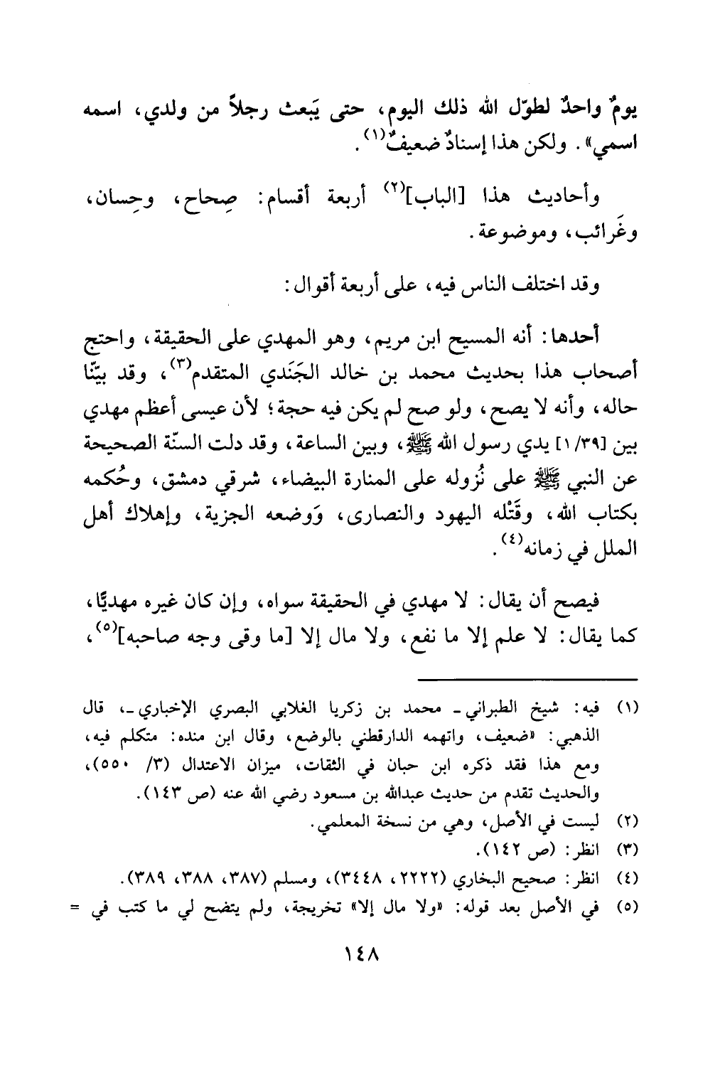 حاله، و نه لا يصج، ولو صح لم يكن فيه حجة؛ لان عيسى أعظم مهدي