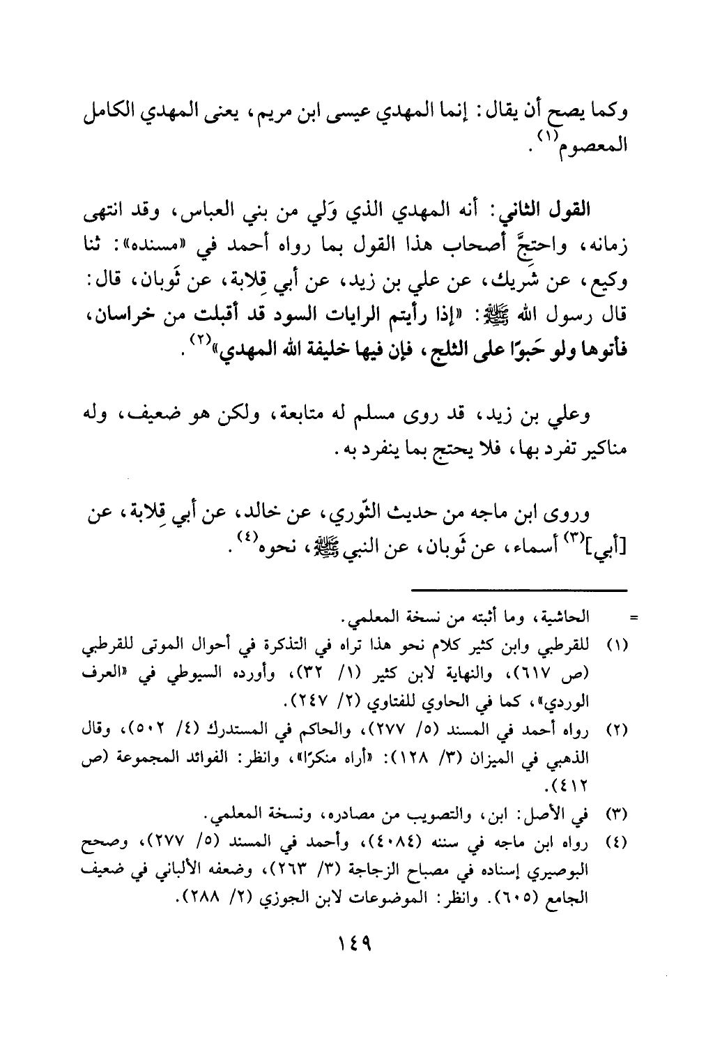 القول] لثاني: أنه المهدي الذي ولي من بني العباس، وقد انتهى