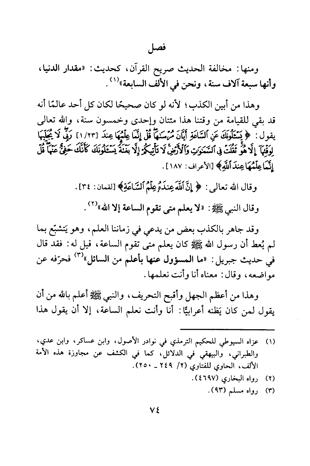 وقال النبي ع! يو: " لا يعلم متى تقوم الساعة إلا الله " (2).