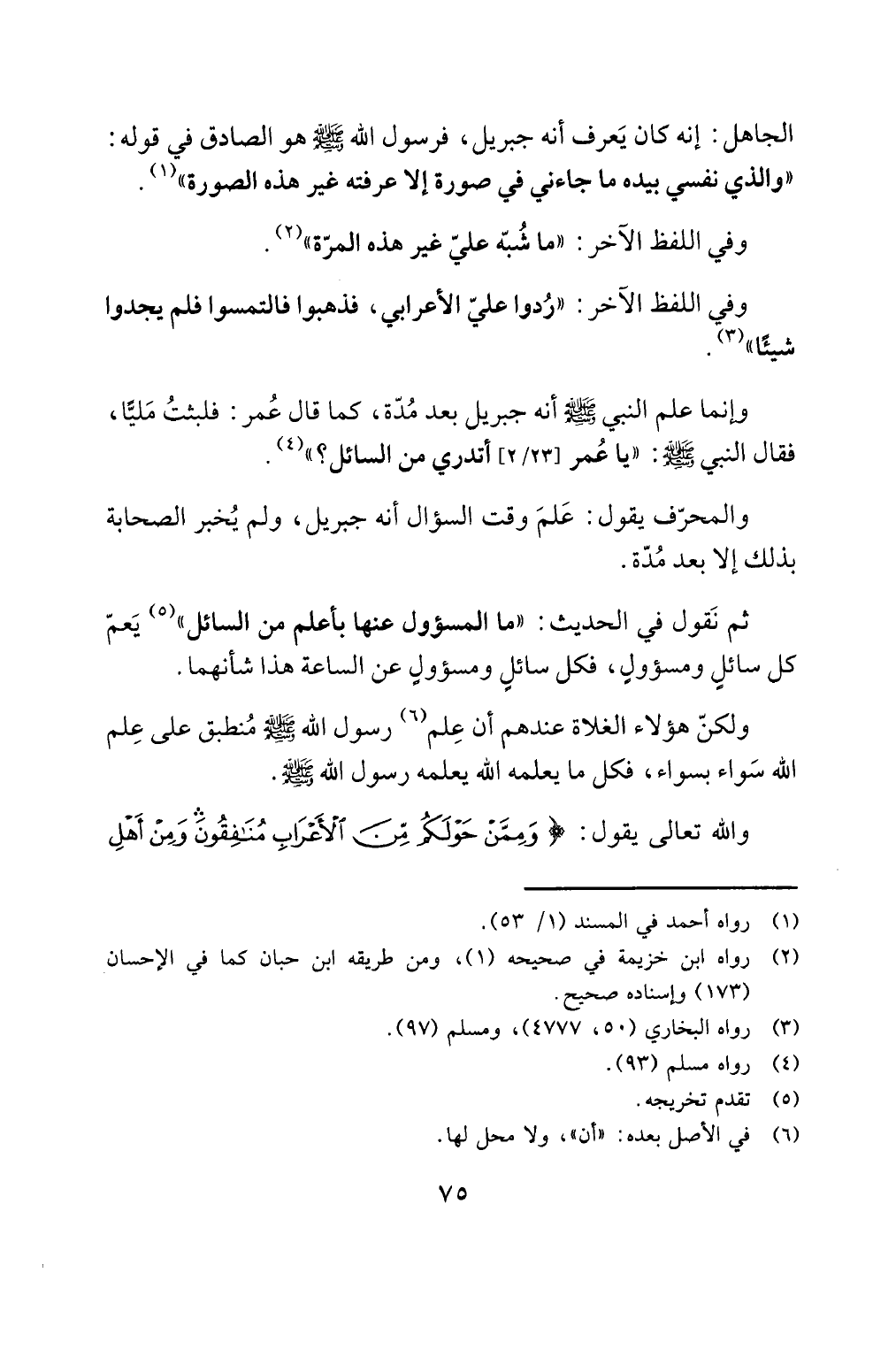 والمحرف يقول: علم وقت السؤال أنه جبريل، ولم يخبر الصحابة