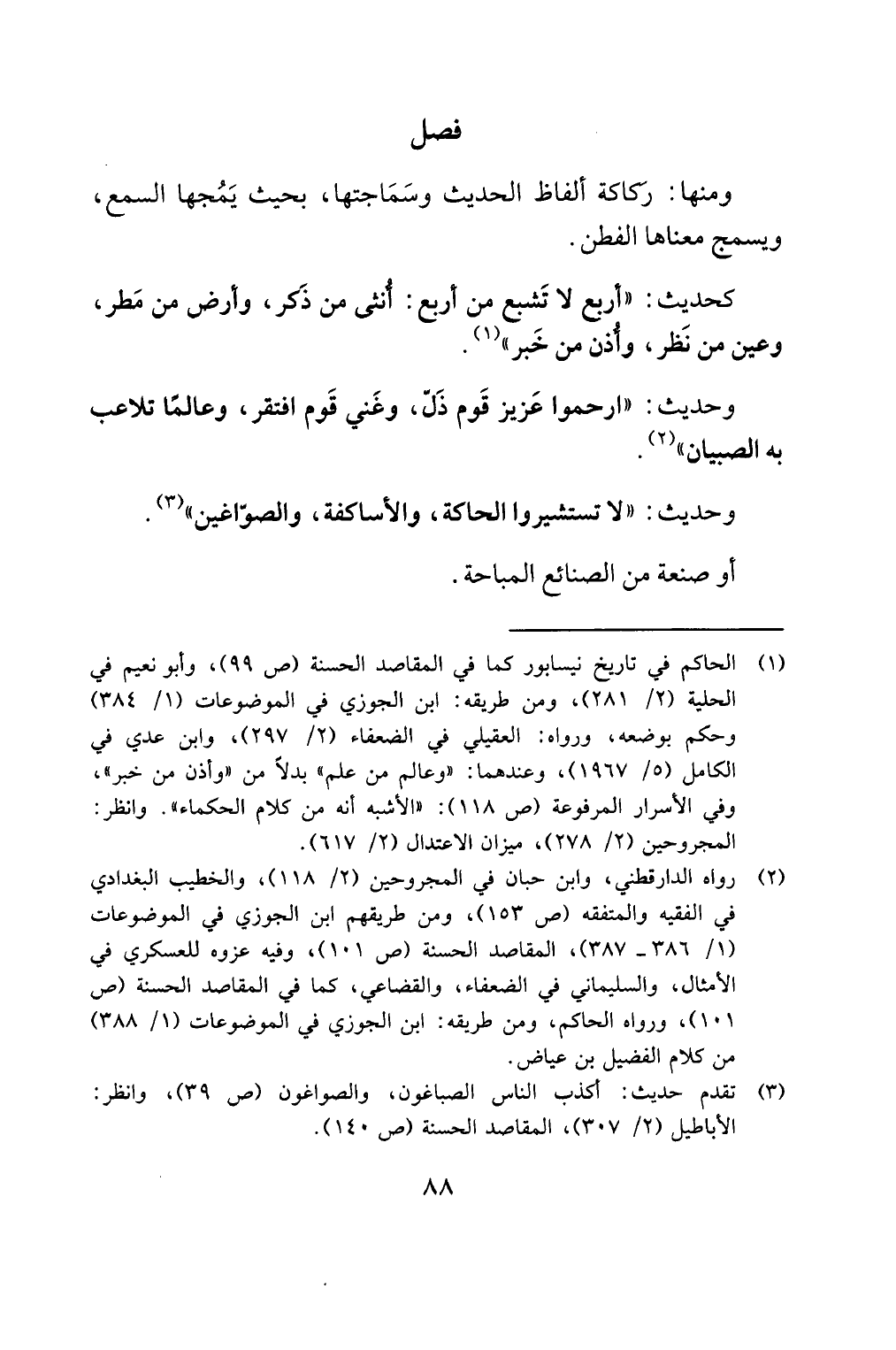 ومنها: ركاكة ألفاظ الحديث وسماجتها، بحيث يمجها السمع،