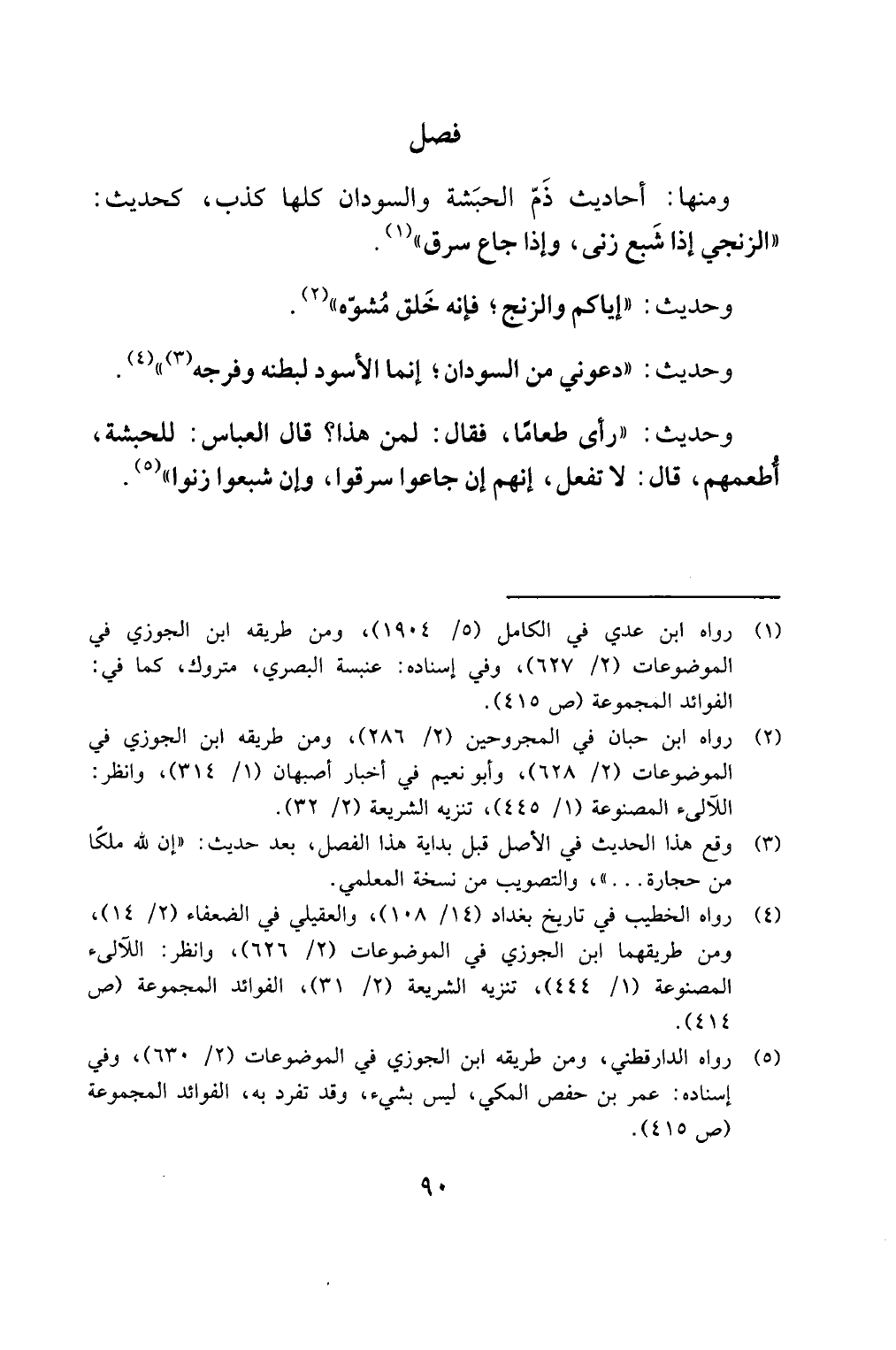 ومنها: احاديث ذم الحبشة والسودان كلها كذب، كحديث: