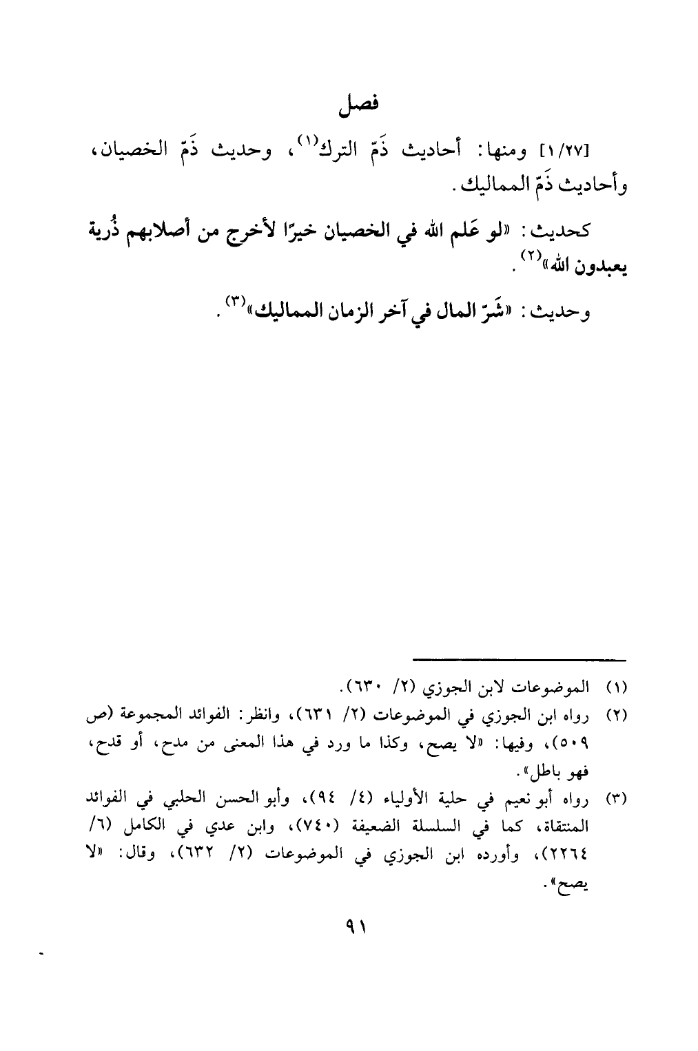 [1/ 27] ومنها: أحاديث ذم الترك (1)، وحديث ذثم الخصيان،