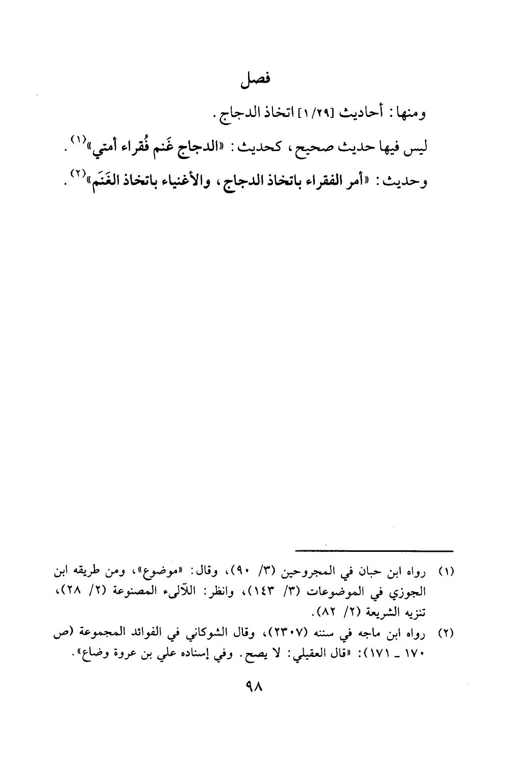وحديث: " أمر الفقراء باتخاذ] لدجاج، وا لأغنياء باتخاذ الغنم " (2)